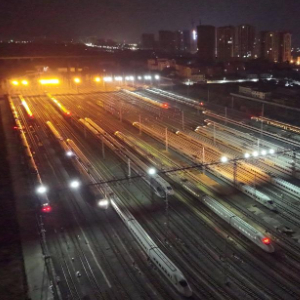 1月24日凌晨,在南宁车辆段桂林动车所,经过检修的动车组整装待发(无人机照片)。