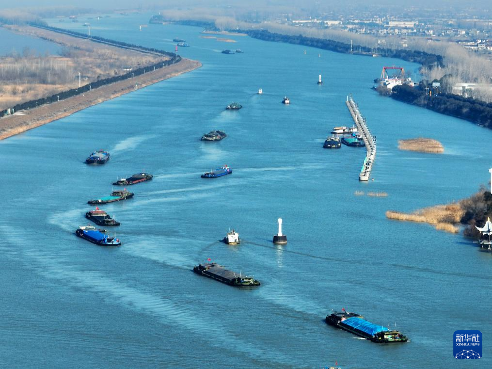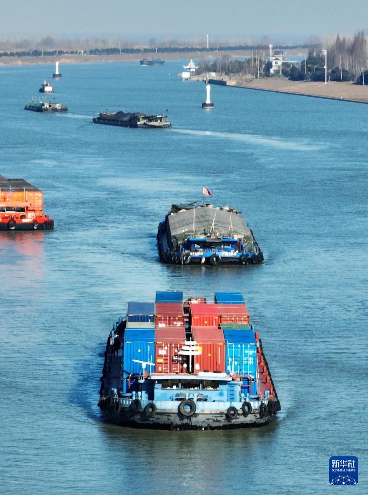 进入冬季,煤炭等物资需求量增加,京杭大运河江苏扬州段上船只往来如梭。一艘艘装载着煤炭、建材等货物的船舶在航道上有序航行,运河上一派繁忙景象。