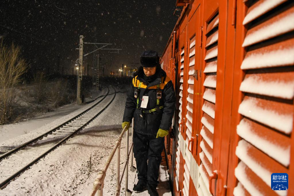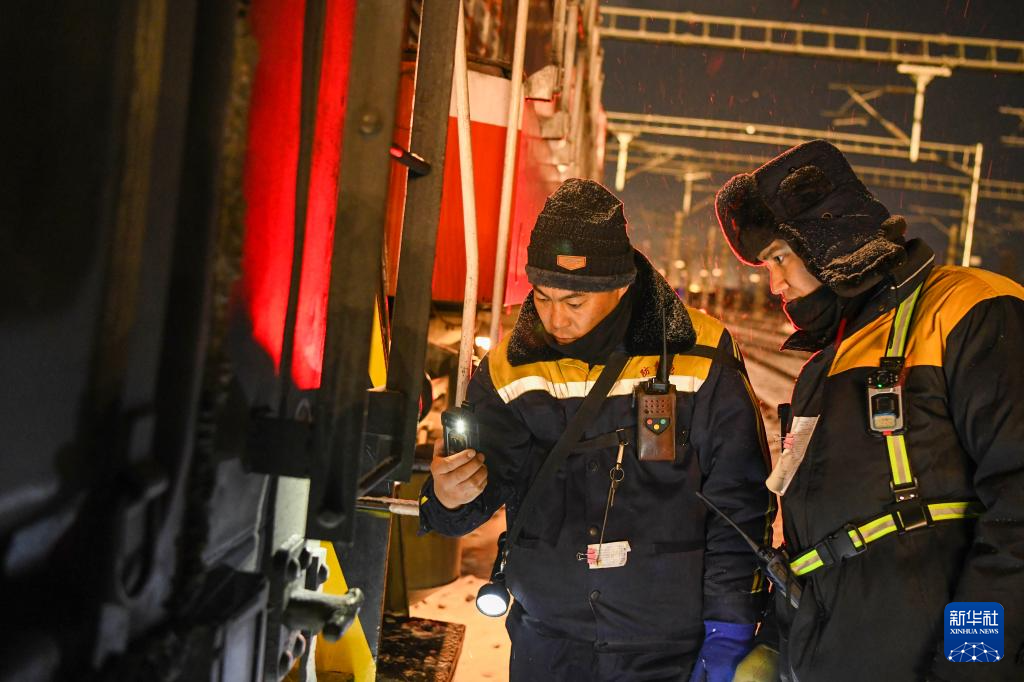 深夜3点,在经历了40多项的安全检查后,28岁的库尔肯·马乌列提和他的同事开始了风雪夜里的“挑战”。未来6个小时,他必须保持清醒,完成10列中欧班列数百个车厢的编组工作。