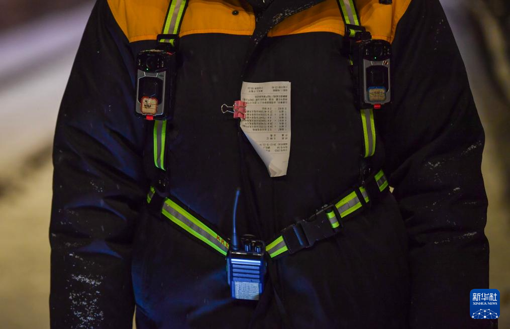 在霍尔果斯铁路口岸,库尔肯胸前挂上了用于编组工作的各种装备(1月16日摄)。