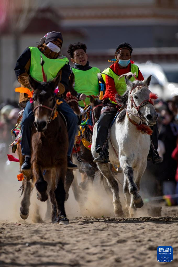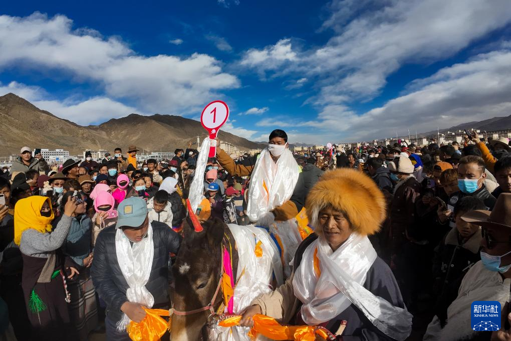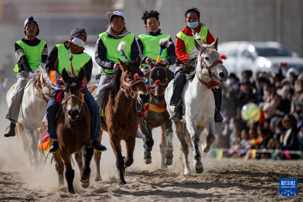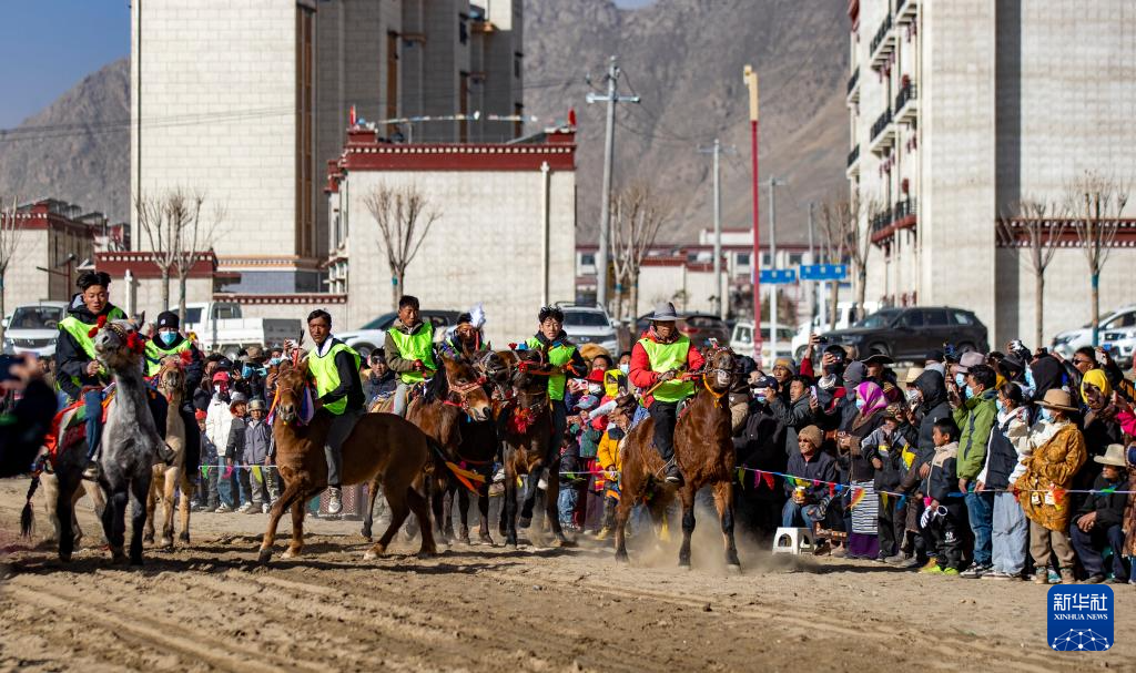 1月24日,西藏山南市森布日生态搬迁安置点举行搬迁以来的首次赛马活动。森布日生态搬迁安置点聚居着来自那曲双湖、尼玛、安多等县16个搬迁乡镇的3万多名高海拔生态搬迁移民。自2019年起,他们陆续从海拔超过4500米的羌塘草原腹地搬迁至此。
