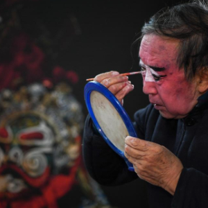 1月25日,在四川省资阳市晏家坝村,川剧演员秦祖金为演出做准备。