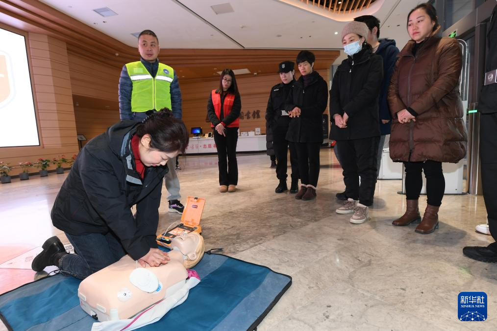 1月26日,建德市图书馆工作人员在医疗急救指挥中心工作人员的指导下进行AED使用培训。