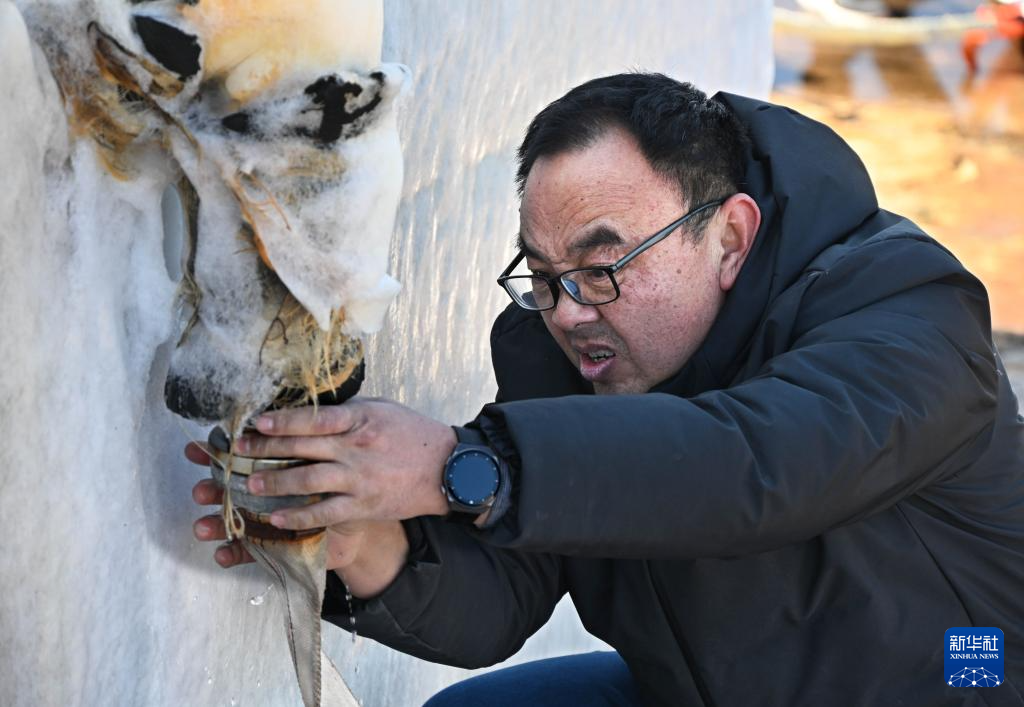 1月25日,在朝连岛守塔的史光勇修理被冻住的水管接头。
