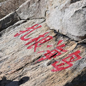 1月25日,在朝连岛守塔的史光勇在张贴春联和福字。