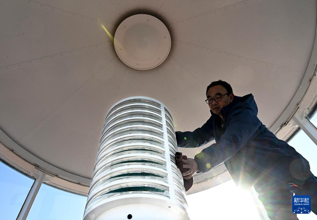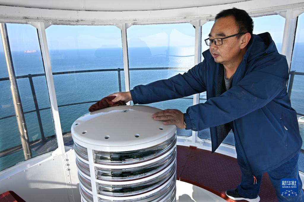 1月25日,史光勇在朝连岛灯塔擦拭航标灯。这是他每天的第一件工作。