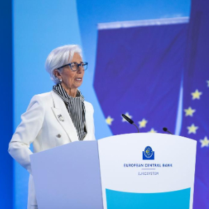 1月25日,欧洲中央银行行长拉加德在德国法兰克福欧洲中央银行总部举行的新闻发布会上讲话。