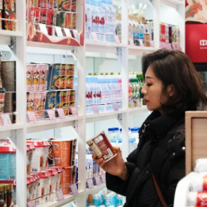 1月26日,旅客在北京站内的中欧班列进口商品保税店内购物。