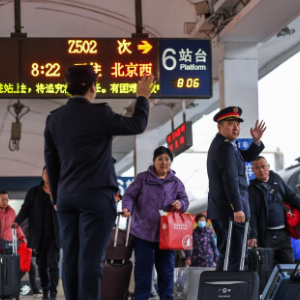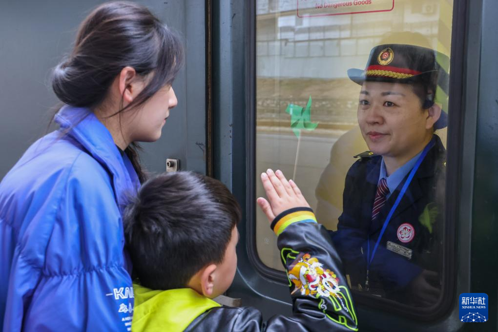 “爸爸妈妈,春运加油!”17岁的张淑淇带着7岁的弟弟张晋,和即将登上列车的爸爸妈妈告别,张飞和唐乐看着孩子们,眼神中流露出不舍和牵挂。