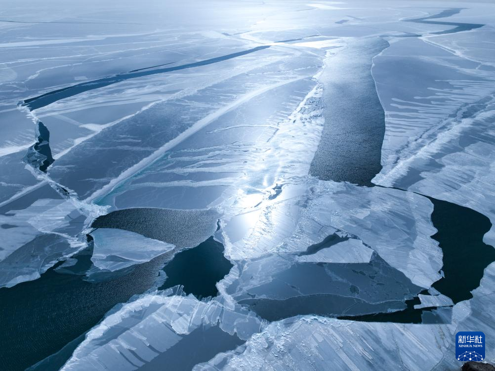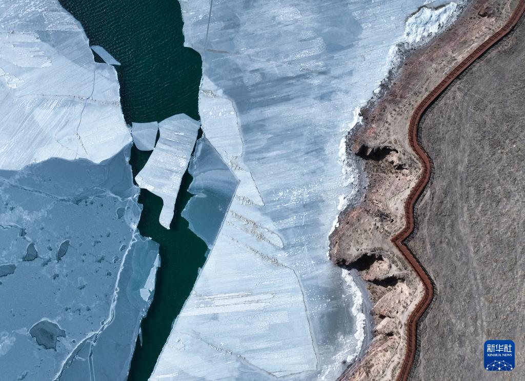这是1月25日在青海省海南藏族自治州共和县境内拍摄的青海湖一角(无人机照片)。