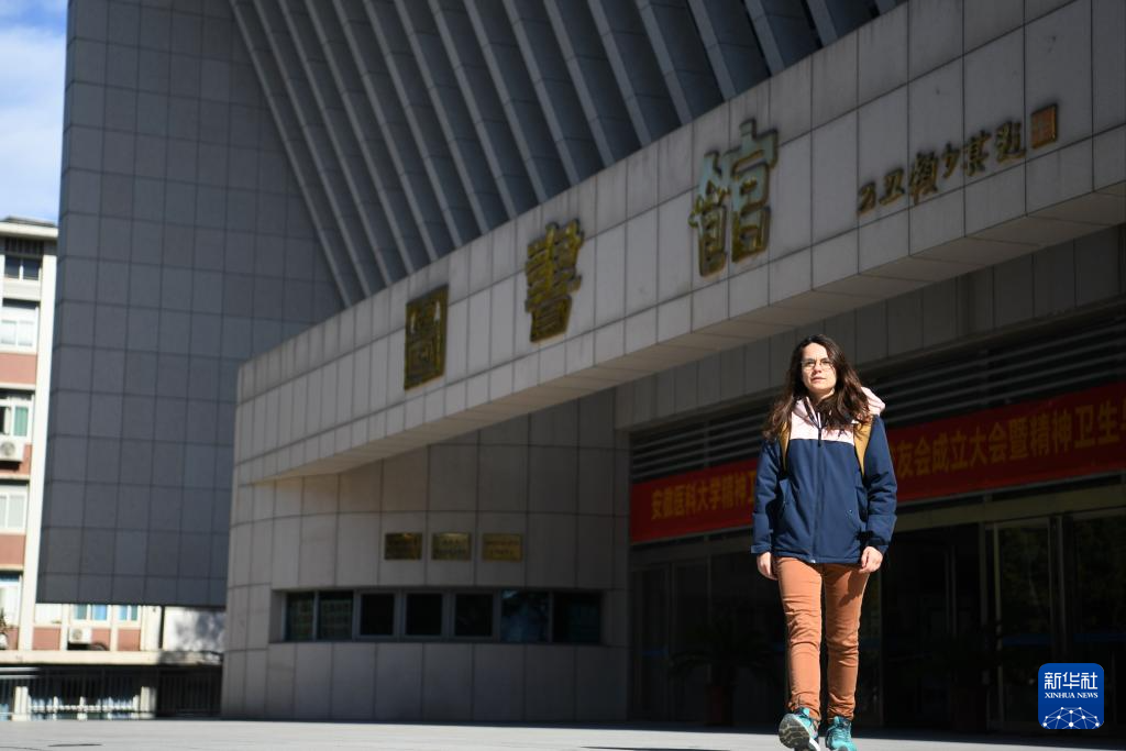 1月23日,章伯涵从安徽医科大学图书馆走出。