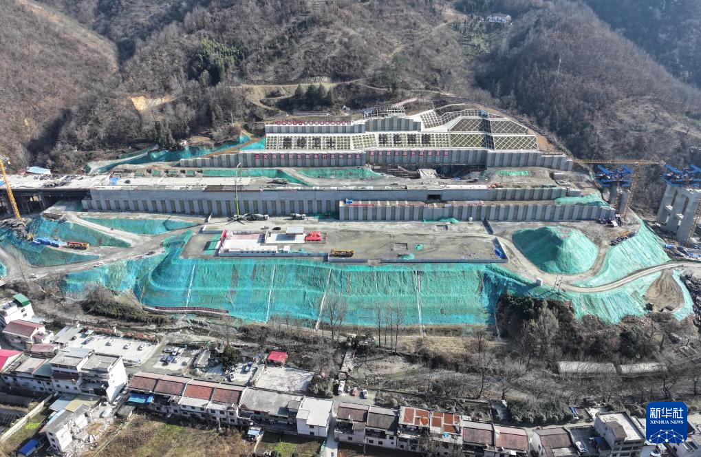 1月26日拍摄的建设中的西康高铁镇安西站(无人机照片)。