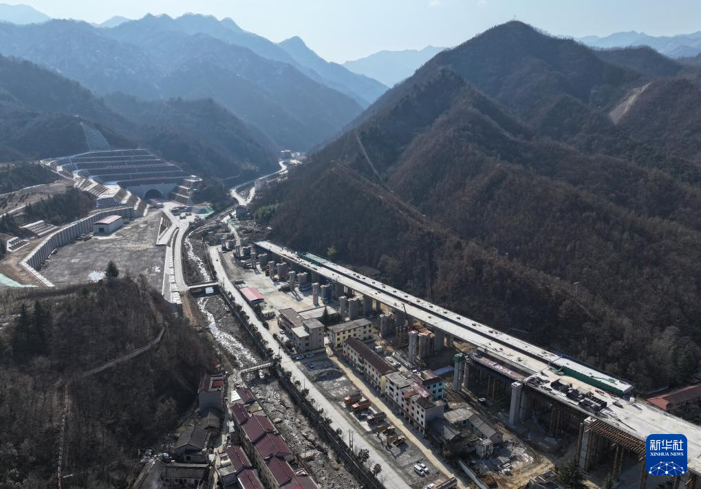 1月26日拍摄的中铁七局集团西康高铁3标段项目施工现场(无人机照片)。