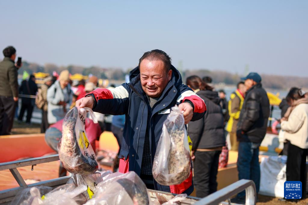 当日,江苏省泰州市姜堰区溱湖冬捕节开幕,现场还举行了民俗表演、传统捕鱼展示等活动,并评选出“溱湖鱼王”。临近春节,溱湖6000多亩水域进入冬季捕鱼季,渔民们抓紧捕捞供应节日市场。