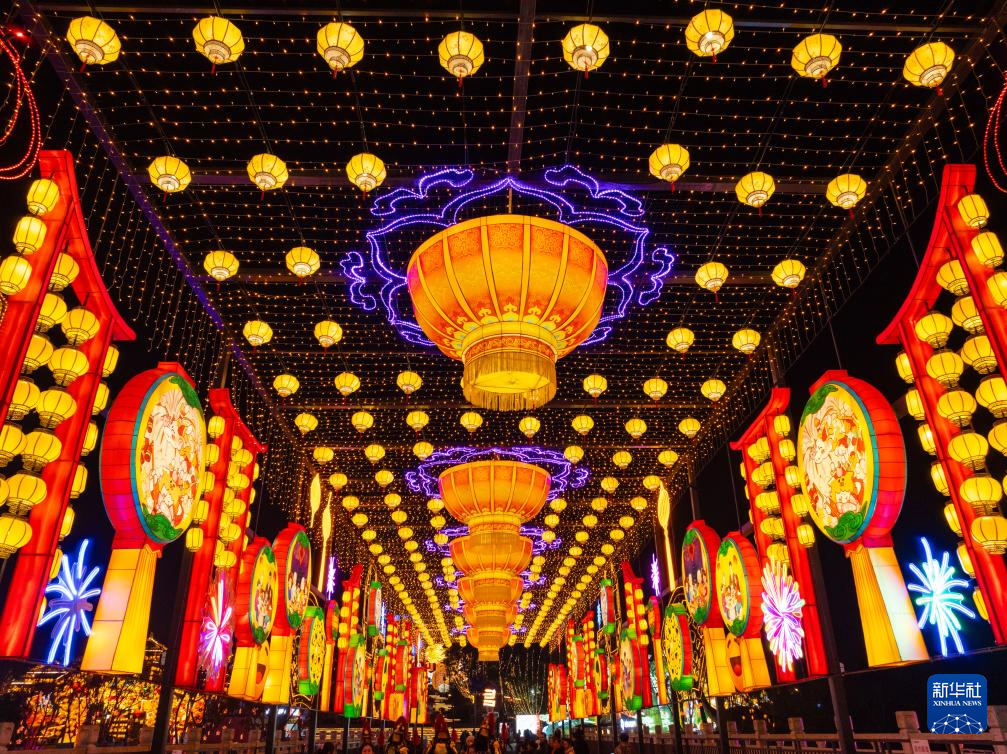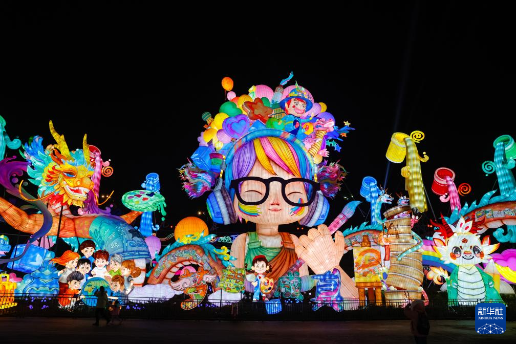 这是1月26日晚在四川省自贡市中华彩灯大世界拍摄的“创想美灯汇”灯组。