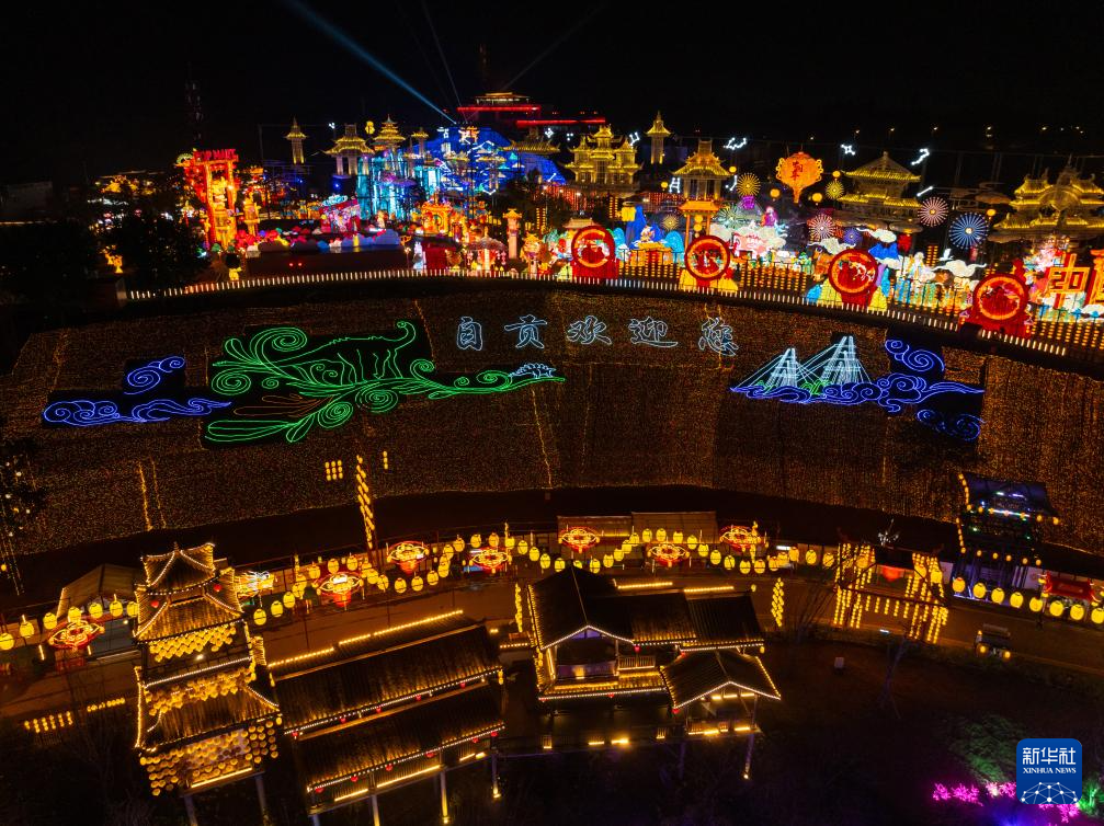 这是1月26日晚在四川省自贡市中华彩灯大世界拍摄的彩灯(无人机照片)。