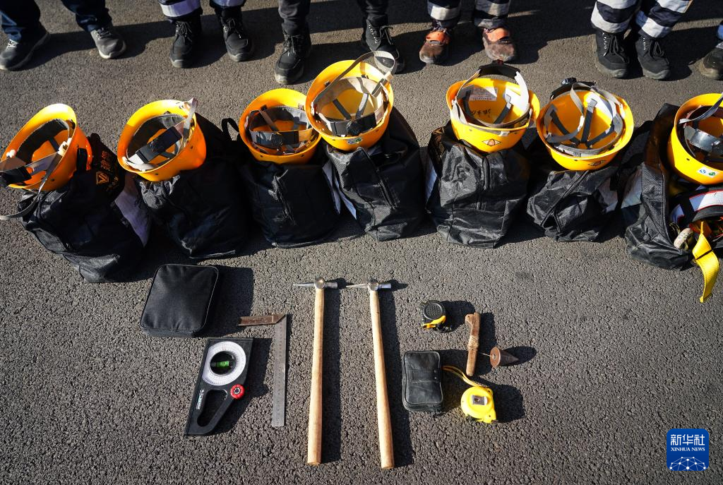1月23日,桥梁工在上桥检修前清点作业工具。
