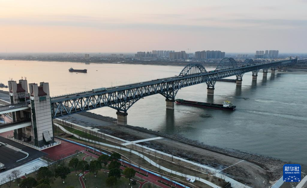 这是1月23日在江西九江拍摄的九江长江大桥(无人机照片)。