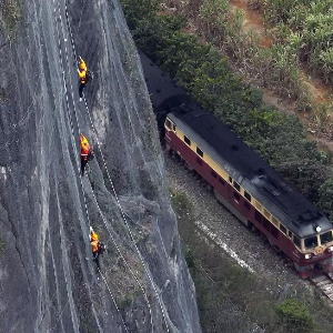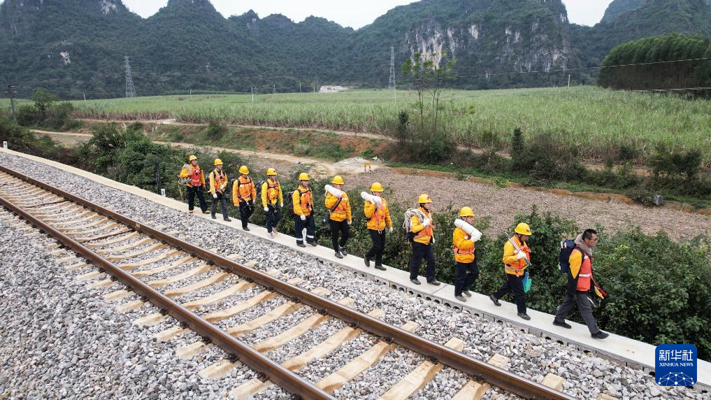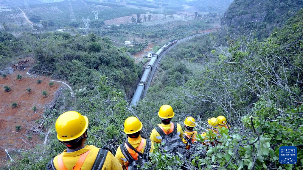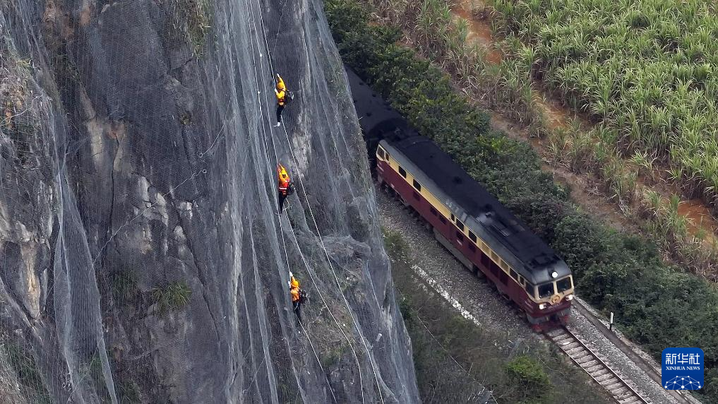 春运伊始,中国铁路南宁局集团有限公司的铁路工人在中越铁路沿线开展搜山扫石作业,防止坡面碎石风化剥落、崩塌到线路上,筑牢国际大通道的春运安全屏障。