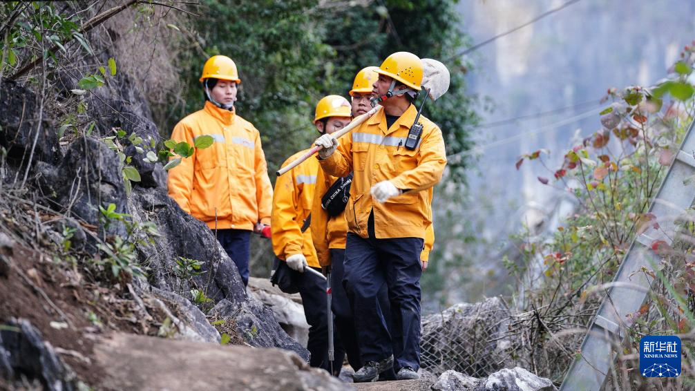 中国铁路南宁局集团有限公司的铁路工人在山林间巡查(1月25日摄)。