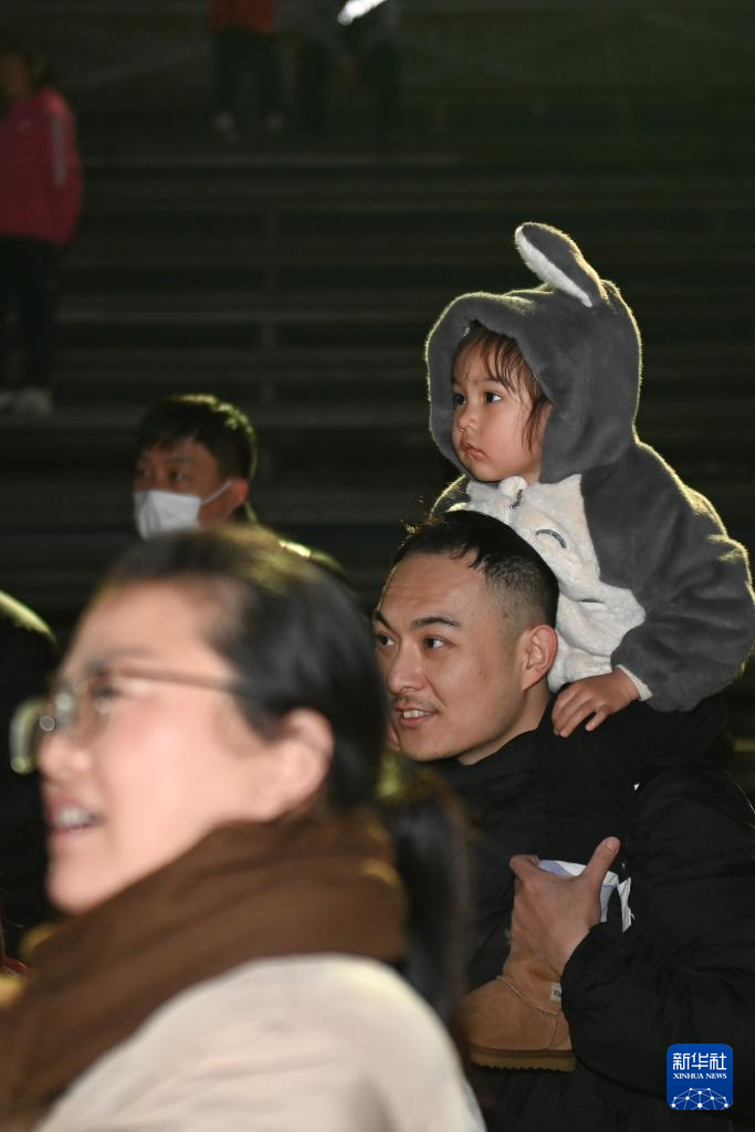 1月27日,游客在杭州宋城景区观看打铁花表演。