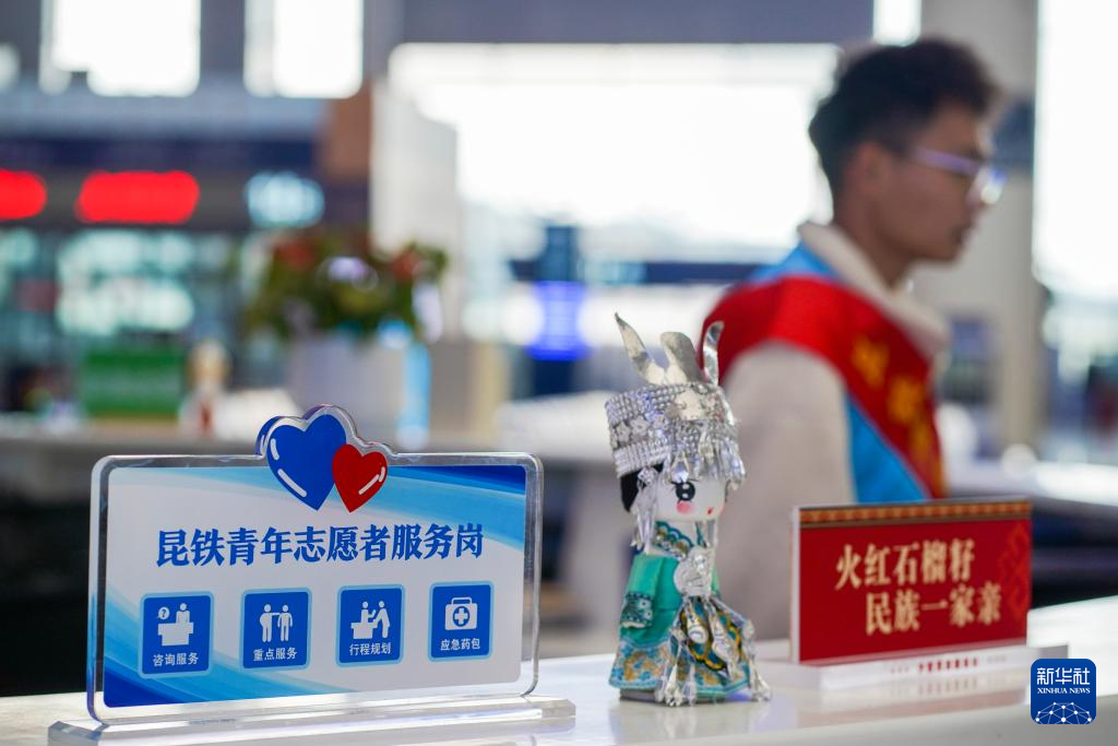 这是1月27日在昆明南站拍摄的昆明青年志愿者服务岗。
