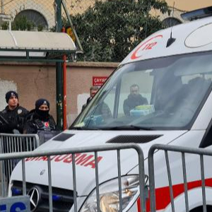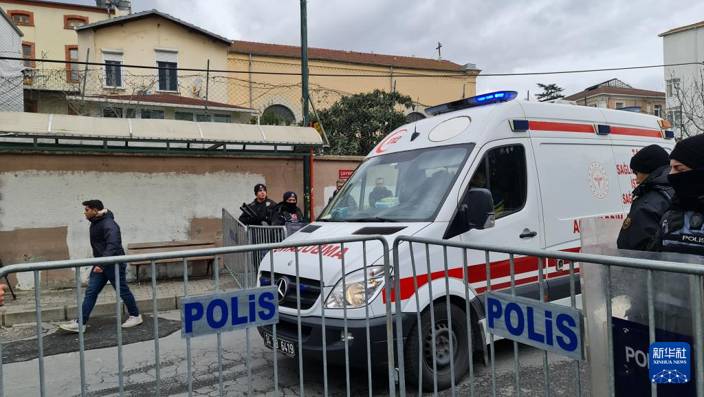 这是1月28日在土耳其伊斯坦布尔发生袭击的意大利教堂前拍摄的救护车。