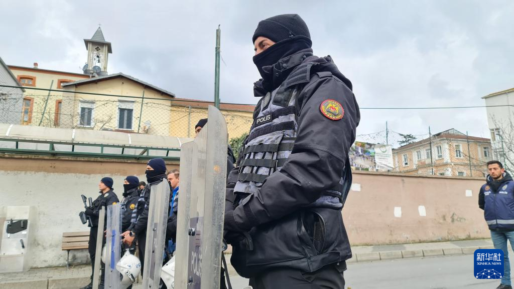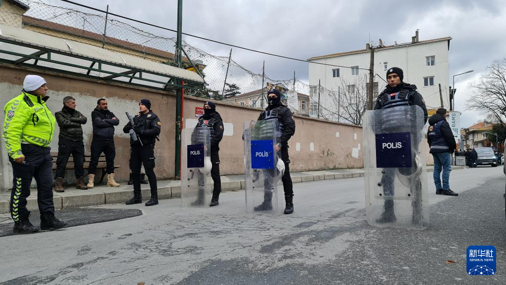 1月28日,警察在土耳其伊斯坦布尔发生袭击的意大利教堂前警戒。