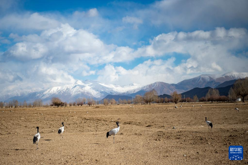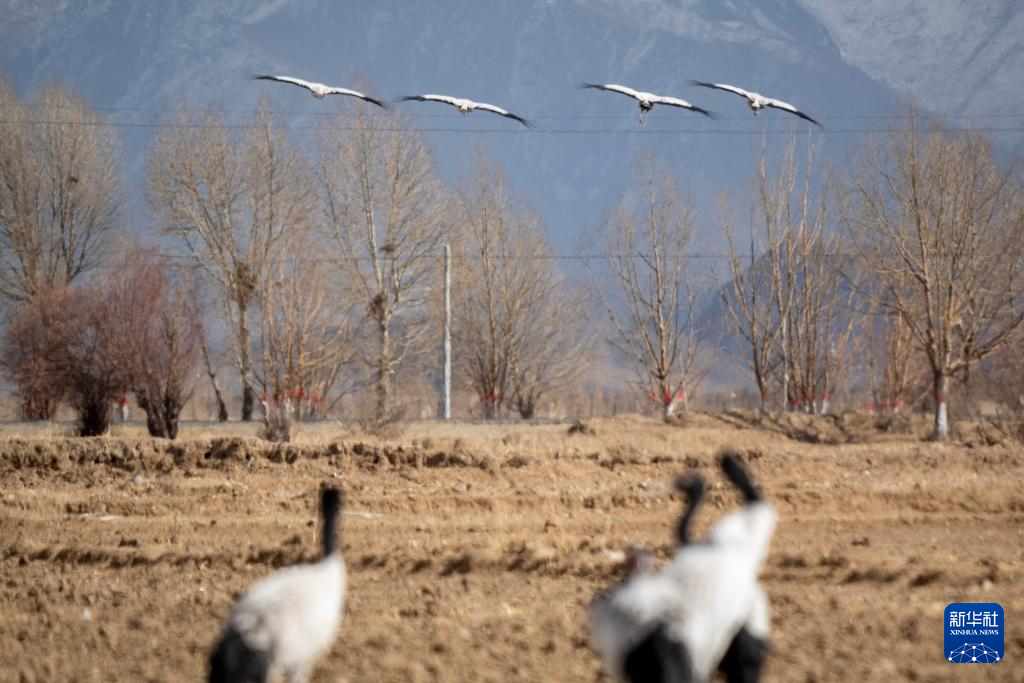 1月27日午后,一群黑颈鹤在阳光下觅食,神态悠闲,惹人关注。黑颈鹤是国家一级保护动物,主要栖息在海拔2500米至5000米的高原草甸、沼泽地带。