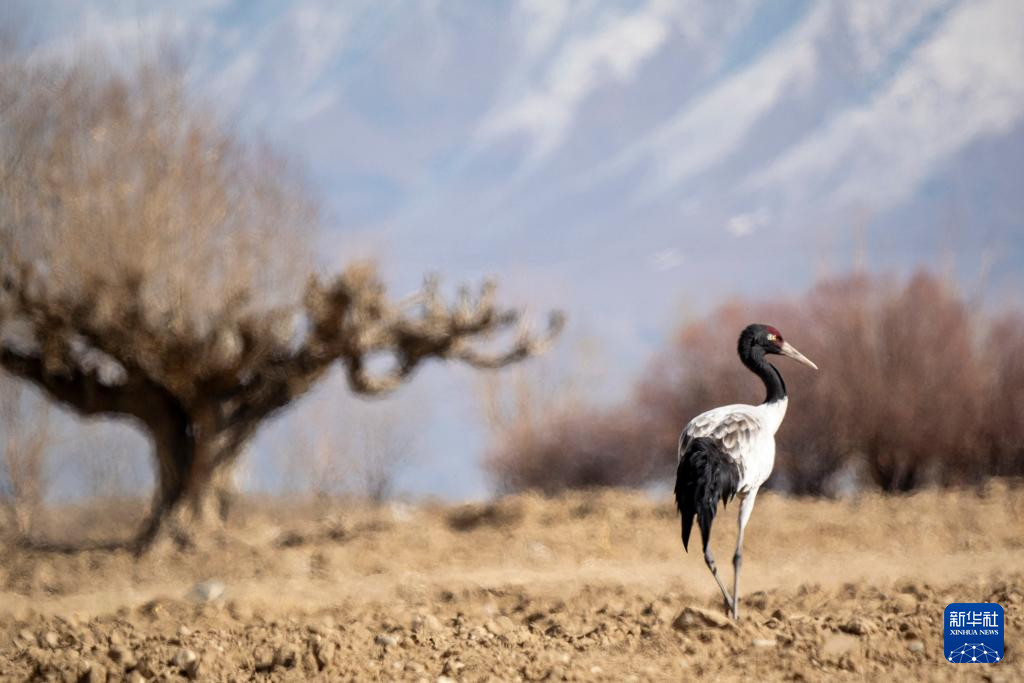 这是1月27日在西藏南木林县艾玛乡田间拍摄到的黑颈鹤。