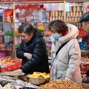 1月28日,顾客在韩家墅海吉星农产品批发市场选购干货。