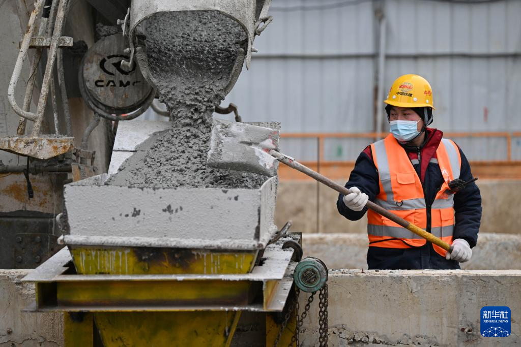 1月29日,中铁十八局建设者在下瓦房站建设现场清理混凝土。