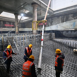 当日,在天津地铁8号线下瓦房站建设现场,中铁十八局建设者用混凝土浇筑最后几块底板,标志着车站主体结构即将完工。据了解,位于繁华闹市区的下瓦房站设计为地下五层,深达38.38米,是天津在建最深地铁车站。