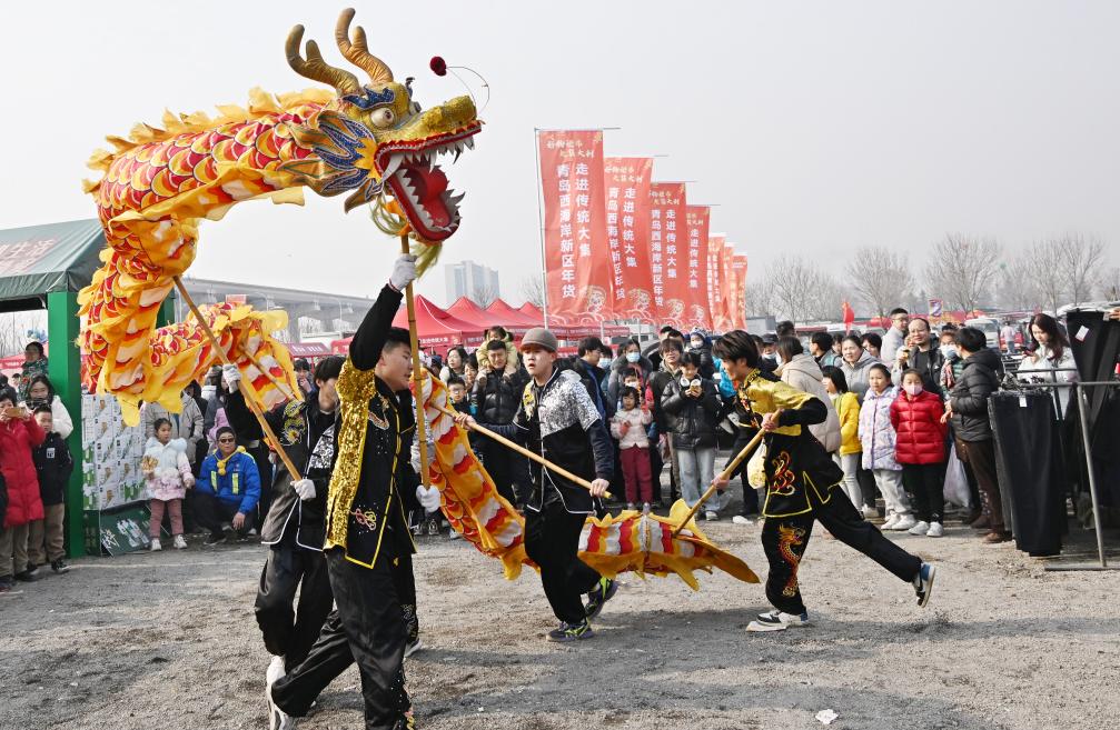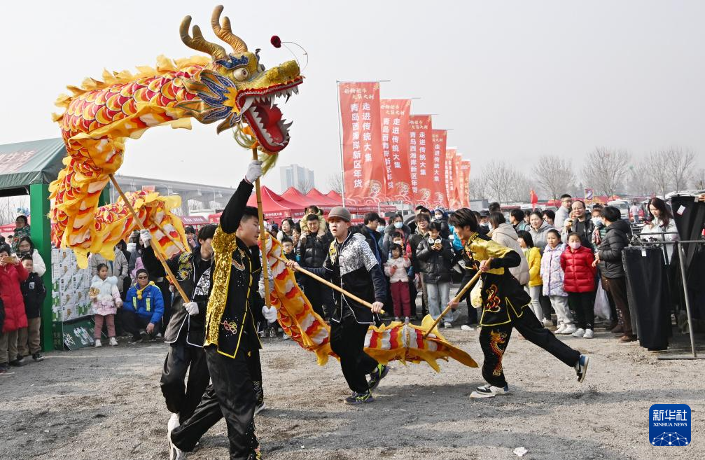 新春佳节将至,青岛市西海岸新区的泊里大集生意红火,年味浓郁。