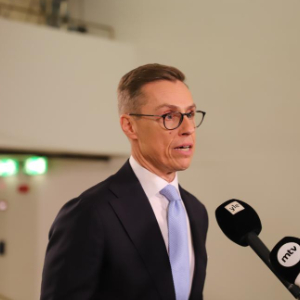 1月28日,在芬兰首都赫尔辛基,总统候选人亚历山大·斯图布接受媒体采访。
