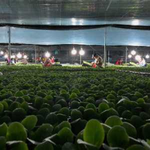 1月29日,河北省滦州市小马庄镇一家蔬菜育苗合作社的社员在大棚内嫁接黄瓜秧苗。