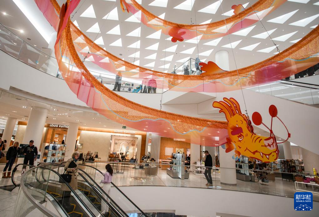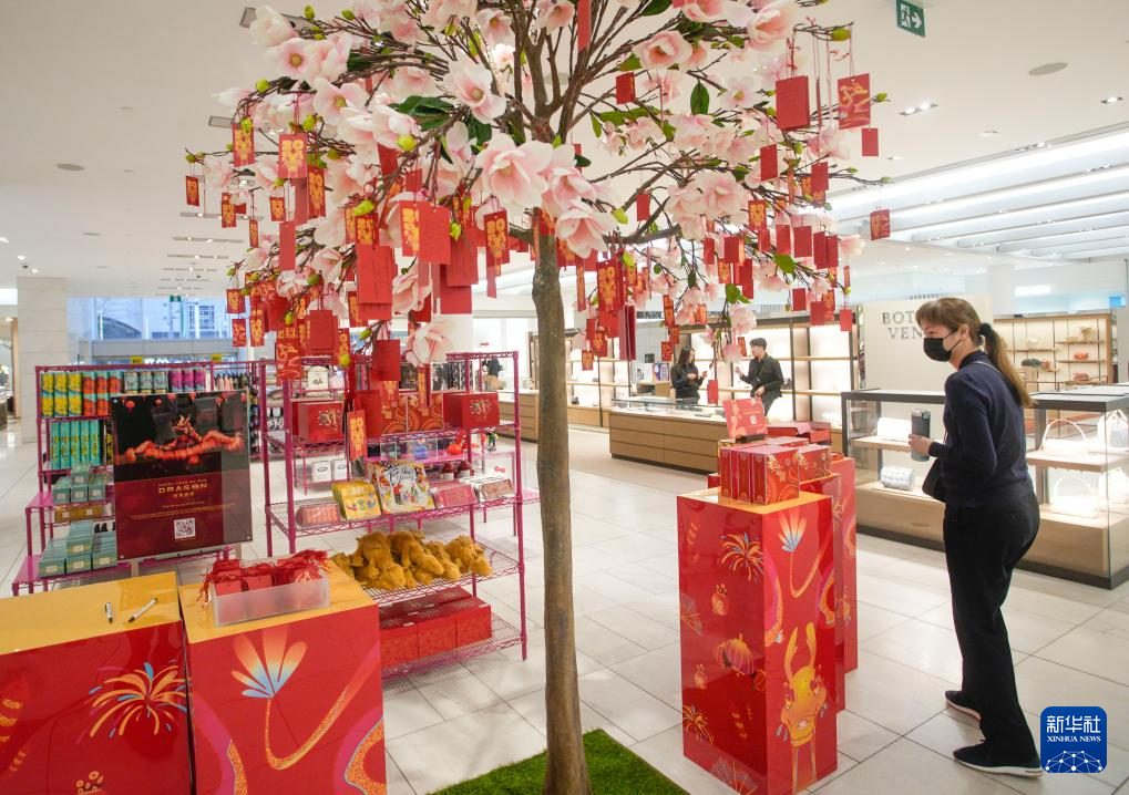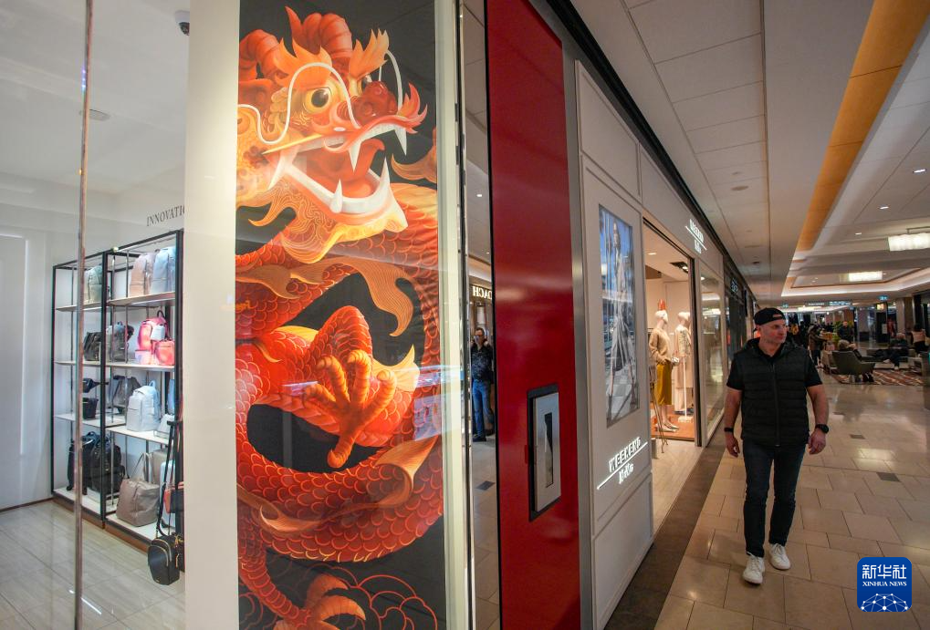 为迎接即将到来的龙年春节,加拿大温哥华的商场和店铺装饰一新,展出春节特色装饰。