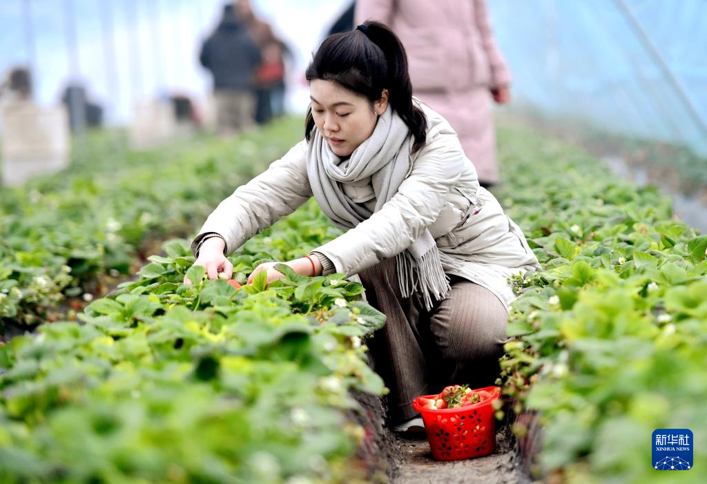当日,河北省石家庄市栾城区举办第22届草莓采摘节,吸引众多游客前往草莓大棚采摘,品尝新鲜的草莓。近年来,栾城区推进休闲农业与乡村旅游融合发展,促进农民增收,助力乡村振兴。