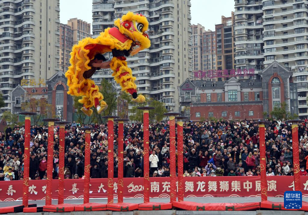 1月29日,四川省南充市顺庆区清泉公园举行2024“千龙千狮闹新春 欢欢喜喜过大年”舞龙舞狮展演。