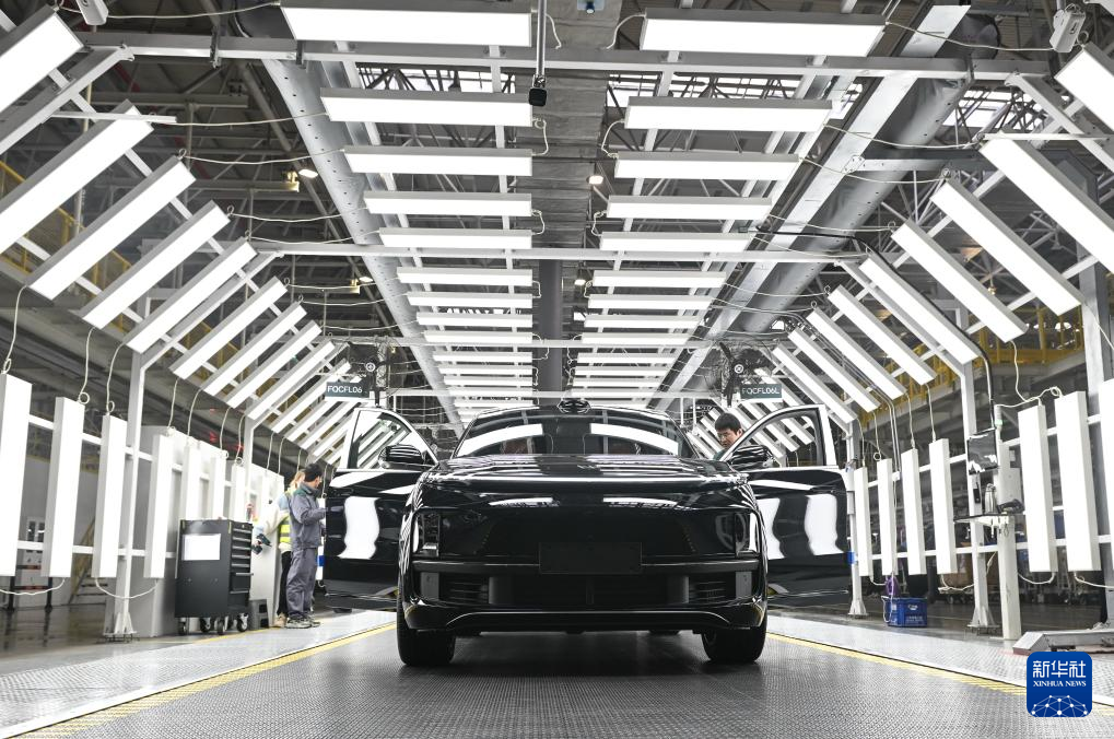 在理想汽车常州基地,成品汽车准备下线(1月10日摄)。