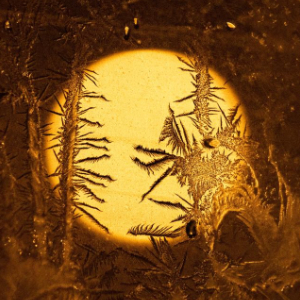这是1月31日日出时分在黑河市拍摄的冰窗花。