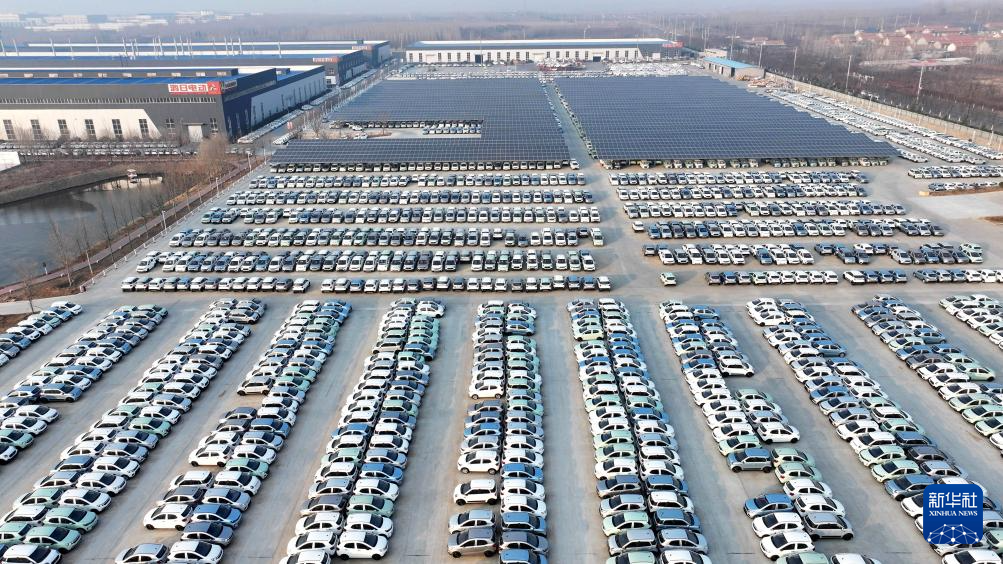 在山东日照鸿日新能源汽车有限公司,刚下线的新能源汽车停放在厂区货场,准备发往河南、河北等地(1月12日摄)。