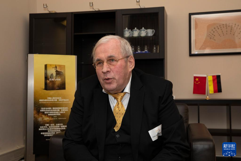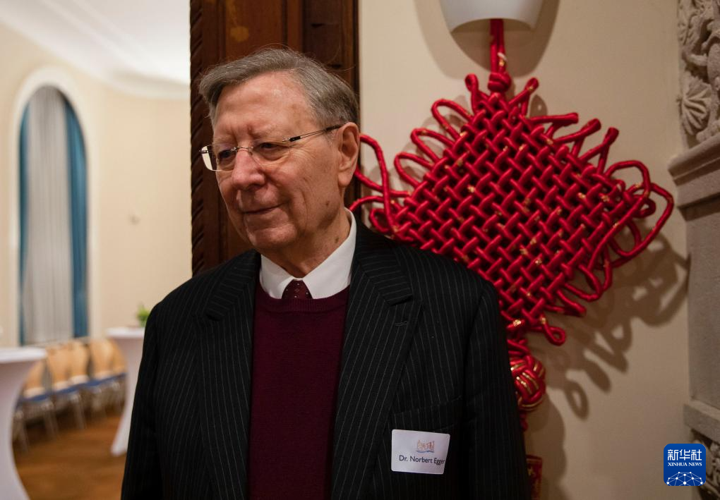 1月27日,被中国人民对外友好协会授予“人民友好使者”称号的卡尔-海因茨·加斯在德国法兰克福接受采访。