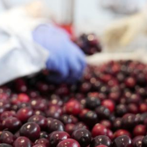 1月29日,在抚远市蔓越莓种植基地,工作人员在分拣蔓越莓鲜果。