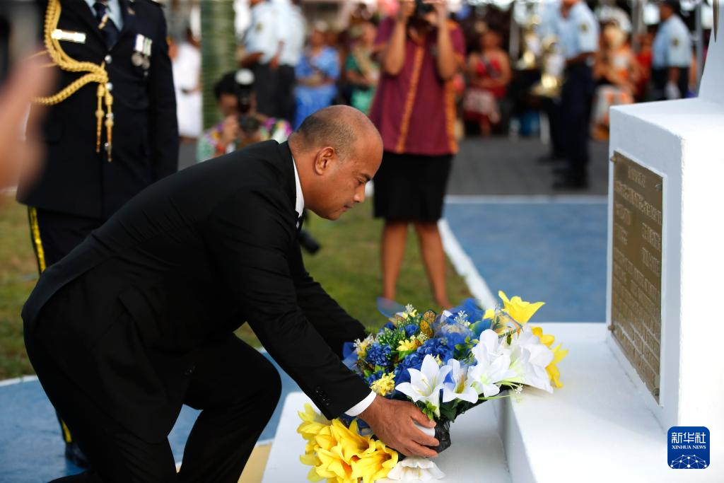 1月31日,瑙鲁总统阿迪昂在战争纪念碑前敬献花圈。