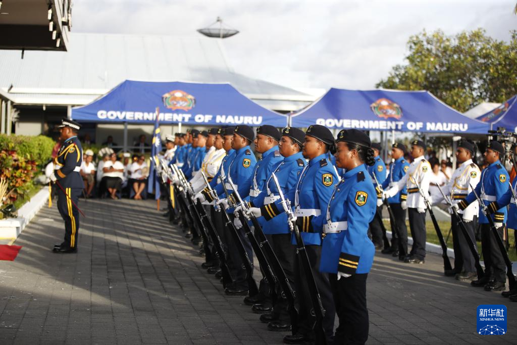 1月31日,瑙鲁警察仪仗队参加独立日庆典活动。