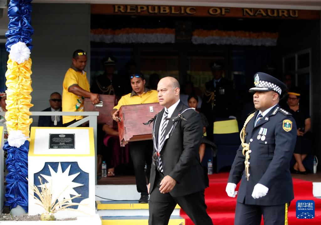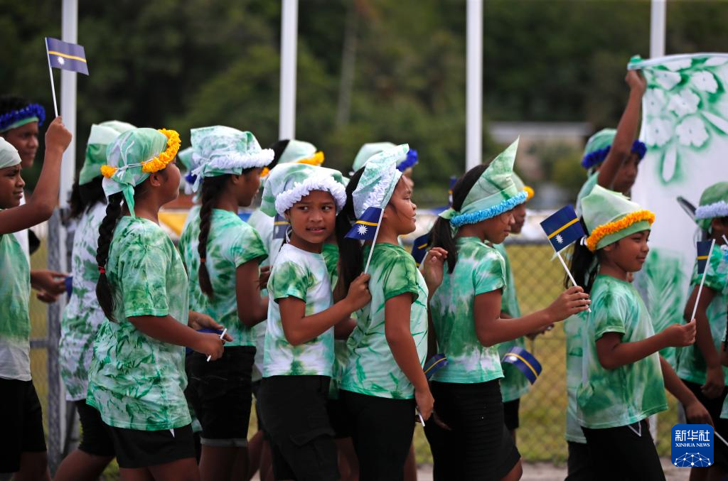 当地时间1月31日上午,瑙鲁在位于行政管理中心亚伦区的政府办公大楼外举行庆典活动,庆祝国家独立56周年。
