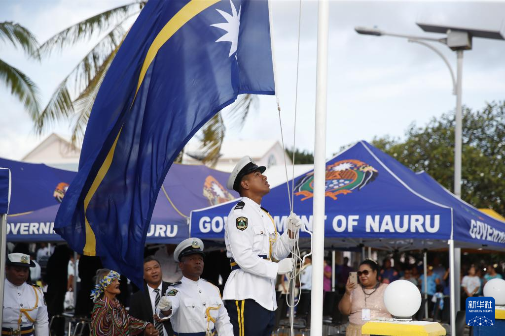 这是1月31日拍摄的瑙鲁独立日庆典活动上的升旗仪式。