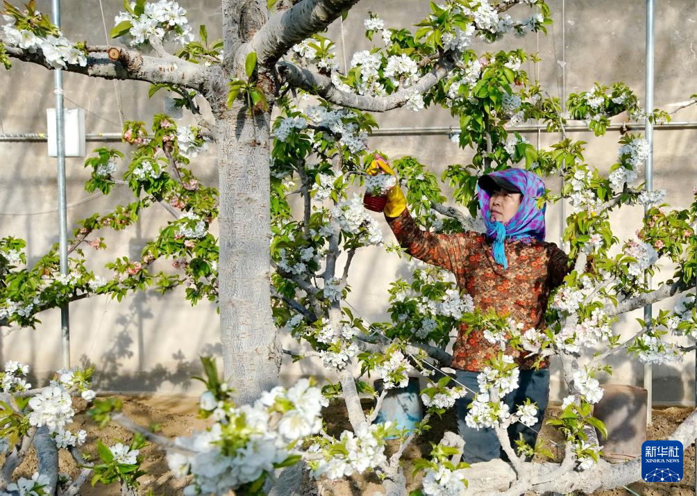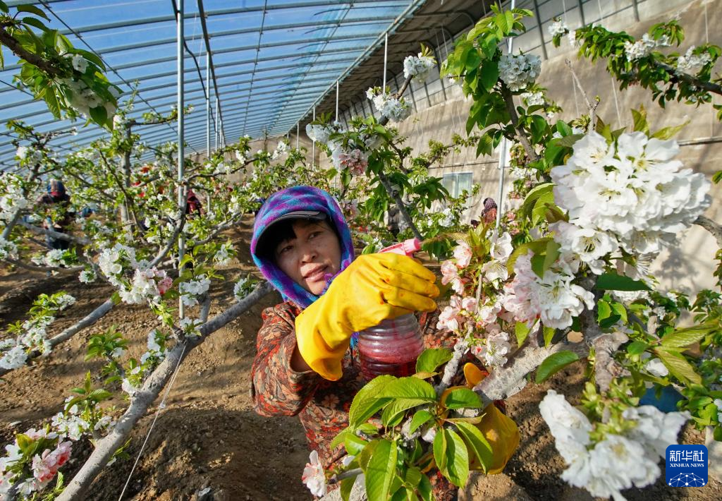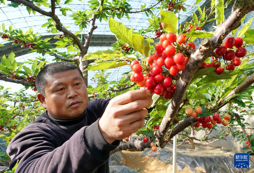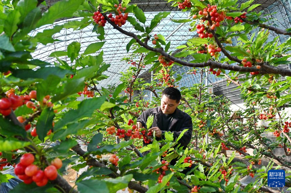 寒冬腊月,河北省秦皇岛市海港区的大棚内不同花期的樱桃树相继开花、结果,果农们忙着管护、采摘,大棚里一派繁忙的景象。近年来,秦皇岛市根据当地气候和土壤特点,引导农民在丘陵和浅山区因地制宜种植樱桃树,促进山坡增绿、农民增收,助力乡村振兴。