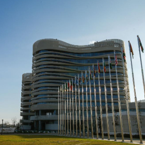 这是1月31日在埃塞俄比亚首都亚的斯亚贝巴拍摄的非洲疾控中心总部大楼。